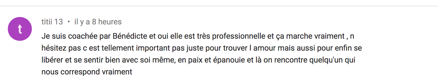 TROUVEZ L’AMOUR EN 5 ÉTAPES est un programme de coaching de 3 à 6 mois, au terme duquel vous trouverez un partenaire qui répondra à vos attentes légitimes.